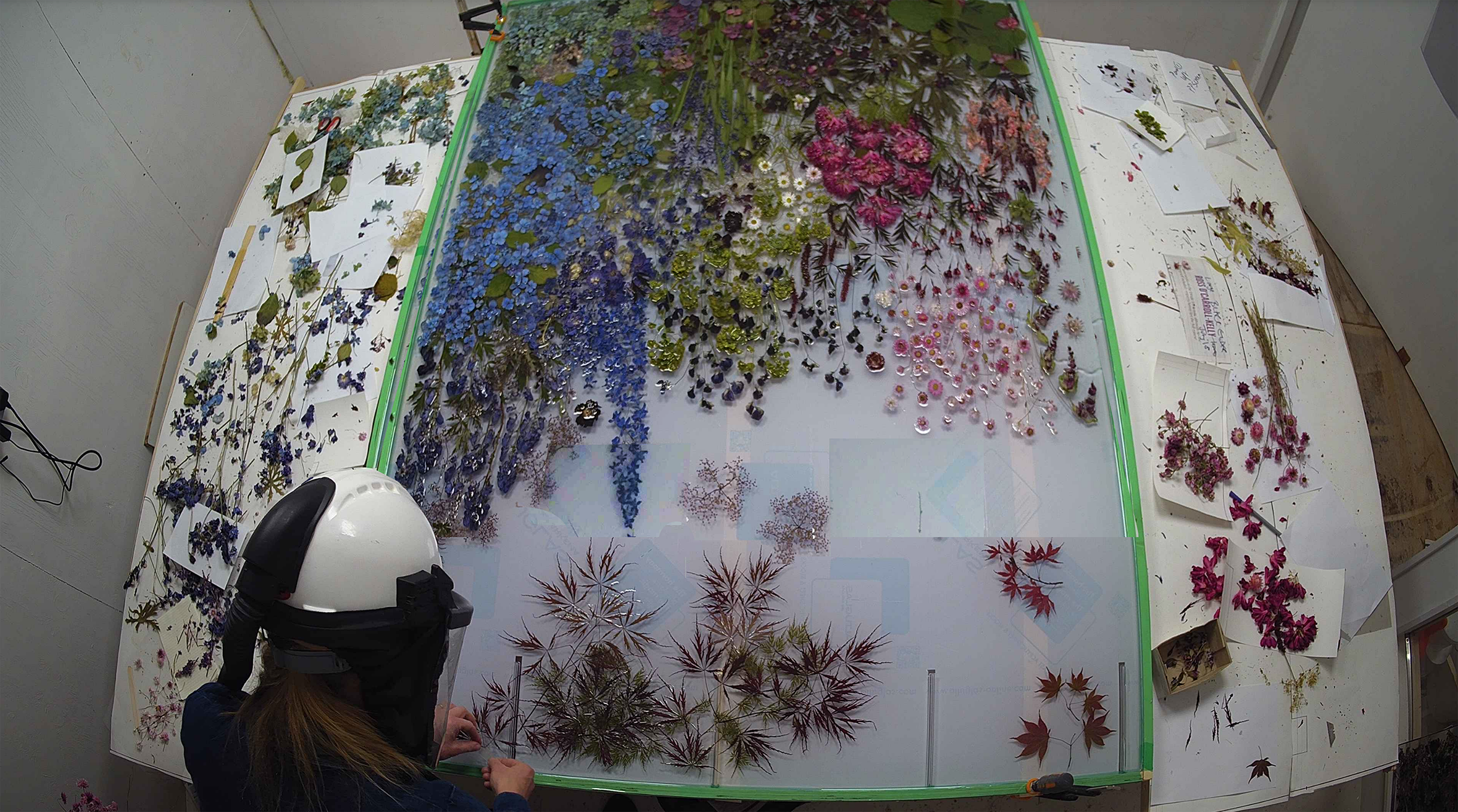Represented by Oliver Sears Gallery, her artworks and furniture pieces are hand made using acrylics and resins to explore, manipulate, and challenge the material language of the natural world through the embedding of plants, flowers, algae and fungi she collects from the landscape.
